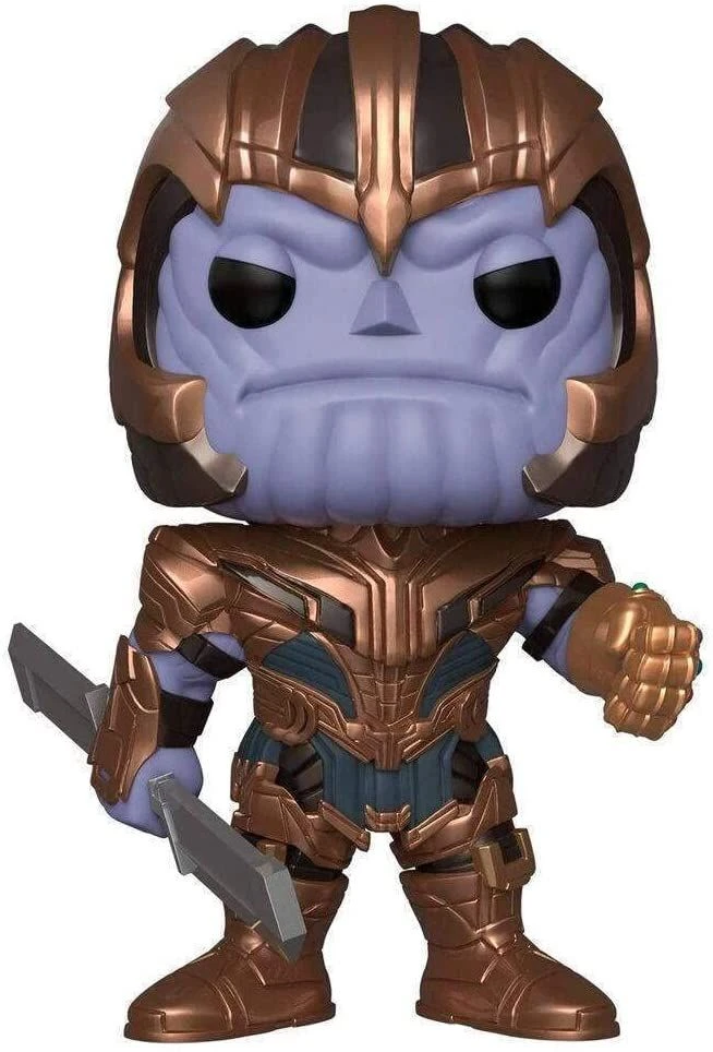 Funko POP! Supersized Figur von Thanos aus Marvels Kino-Blockbuster Avengers: Endgame.