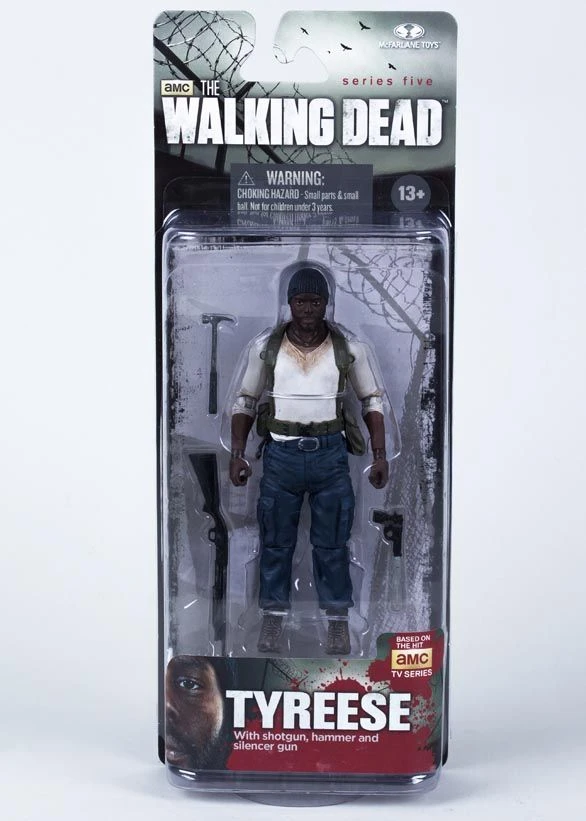McFarlane Actionfigur Serie 5 von Tyreese aus der erfolgreichen Horror-TV-Serie The Walking Dead. Die bewegliche Figur von Tyreese kommt mit Shotgun, Pistole (schallgedämpft) und Hammer.