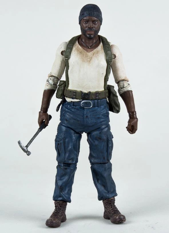 Die bewegliche Figur von Tyreese kommt mit Shotgun, Pistole (schallgedämpft) und Hammer.